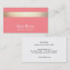 Elegantes, stilvolles Design der Visitenkarte mit drei Streifen aus IMITAT in horizontalem Gold auf korallenrosa Hintergrund. Das ist NICHT echtes Goldblatt - sondern ein Bild. Es gibt keinen Glanz oder keine Textur. Eine vielseitige Visitenkarte für kreative Profis und Unternehmer. Diese vielseitige Netzwerkkarte eignet sich auch hervorragend für Beauty-Salons, Tanzstudios, Mode-Boutiquen, Hochzeitsplaner, Schmuckdesigner, Friseur oder andere Bildexperten.