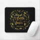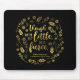 Dieses mousepad kennzeichnet das Zitat von William Shakespeare einem Traum der Hochsommer-Nacht ", obwohl sie aber wenig ist, sie ist heftiges" umgeben durch Blumen und Blätter in der Imitatgoldfolie gegen einen schwarzen Hintergrund.