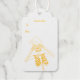 Dieses Geschenketikett zeigt eine goldene Folie eines lustigen Skeletts in einer Weihnachtsmannmütze, das ihm die Ornamente an den Augen hält. Der Rücken ist rot mit frohen Weihnachten in Gold. Passen Sie Ihren Text auf der Vorderseite mit der Vorlage an.