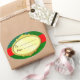Dieser Sonderaufkleber hat einen vergoldeten Rahmen auf einem roten Band auf einem Waldgrün-Hintergrund für Feiertage mit einem blauen und grünen Kiefernmuster, das aus einer Vintagen Ätzung entsteht. Fügen Sie diesem Aufkleber Ihre persönliche Nachricht hinzu!