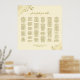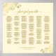 Dieses schöne Hochzeitssitzdiagramm zeichnet sich durch einen goldenen Text auf einem Elfenbeinhintergrund oder in Cremetönen mit Sitzplätzen für bis zu 250 Gäste aus. Es zeichnet sich durch ein schlichtes, aber stilvolles und elegantes Design mit verzierten dekorativen Imitaten aus goldenen Filigree in den Ecken aus. Der Titel ist in extravaganter Skriptkalligrafie geschrieben und lautet: Bitte finden Sie Ihre Tabelle.