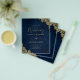 Moderner marineblau Hintergrund mit goldgelben Spitzen-Grafik Akzenten ist das Thema dieses Hochzeitsstückes. Dieses Hochzeitsstück ist Teil einer größeren Sammlung, die Einladungen für Hochzeiten (Budget und traditionell) RSVP-Karten, Save the Dates, Wedding Welcome Sign und mehr beinhaltet. Sehen Sie sich die angehängte Auflistung an, um sie alle zu sehen. Dieses elegante und moderne Design ist perfekt für Ihre Hochzeit, sei es im Frühling, Sommer, Herbst oder Winter. 🎨 Design von LeahG® weddingdesignchic.com und 100xgifts.com. 📌 BUTTON dies zu Ihrem Pinterest Hochzeitsmoodboard. ⬇️ SEHEN SIE ALLE PRODUKTE, DIE DIESES DESIGN FUNKTIONIEREN, ÜBER DIE NACHSTEHENDE TAB ⬇️