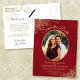 Gold Lace on Red Wedding Save the Date Oval Foto Ankündigungspostkarte