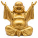 This is a graphic printed onto a flat 2D acrylic plastic sheet. For the statuette sculpture, the acrylic figurine is propped up on a little stand which is perfect for religious displays. // - // "gold laughing buddha statue", "Budai Hotei Zen monk", "Maitreya buddhist buddhism sage", "fat happy jolly sitting master", "big belly smiling guru smile", "folk chinese prosperity abundance", "shrine altar flat statuette", "hands raised up wealth", "light and portable for travel", "good luck rich joy sculpture"