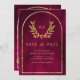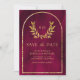 Gold Laurel Wreath Blätter Fuchsia Magenta Wedding Save The Date