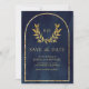 Gold Laurel Wreath Blätter Navy Blue Wedding Save The Date