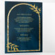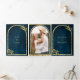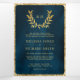 Gold Laurel Wreath Blätter Ocean Blue Wedding Dreifach Gefaltete Einladung