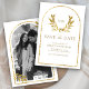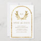 Gold Laurel Wreath Blätter White Wedding Save The Date