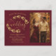 Gold Leaves Burgundy Wedding Save the Date Photo Ankündigungspostkarte