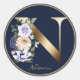 Gold Letter N Elegante Floral Monogram Runder Aufkleber