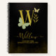 Eleganter goldener Buchstabe W mit zarten Schmetterlingen und sanften botanischen Akzenten, als luxuriöses Notebook-Cover gestaltet. Dieses hochwertige Design eignet sich perfekt für Journalisten, Schulklassen oder Geschenke und bietet eine individuelle Namensoption für eine persönliche und elegante Touch.