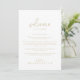 Dieser extravagante Hochzeitsskripte-Begrüßungsbrief der Goldmedaille ist perfekt für eine rustikale Hochzeit. Das einfache und elegante Design zeichnet sich durch klassische und extravagante Schriftzeichen in Gold aus. Personalisieren Sie die Front mit einer Begrüßungsbotschaft für Ihre Gäste und Ihren Namen. Personalisieren Sie den Rücken mit dem Veranstaltungskalender und anderen nützlichen Informationen.
