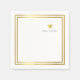 Nur ein nettes und einfaches Imitat goldenes Herz der Liebe mit Namen von Paaren, auf sauberen und klaren Servietten mit goldfarbenem Rahmen, für Ihr elegantes Mittag- oder Abendessen