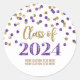Gold Lila Confetti Abschluss 2024 Runder Aufkleber
