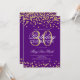 Elegante 30. Geburtstag Gold Imitate Glitzer Confetti Lila Einladung Vorlage. Tolle zum 30. Geburtstag Partys und mehr!