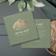 Mit dieser wunderschön gestalteten Yoga-Trainer-Visitenkarte mit einem ruhigen grünen Hintergrund und einer Imitat-Goldfolie-Lotus-Blume auf der Vorderseite machen Sie einen bleibenden Eindruck. Ideal für Yogalehrer, Wellness-Trainer und Meditationslehrer, bietet diese Karte eine berufliche, aber beruhigende Ästhetik, die Ihre Praxis widerspiegelt. Mit benutzerdefinierbaren Platzhaltern können Sie diese einfach mit Ihrem Namen, Ihren Kontaktinformationen und Geschäftsinformationen personalisieren. Das Design beinhaltet auch Social Media Icons, mit denen Sie Ihre Online-Präsenz präsentieren und mühelos mit Ihren Kunden kommunizieren können. Eine stilvolle und berufliche Art, Ihre Yoga-Dienstleistungen mit Anmut und Achtsamkeit zu fördern.