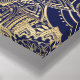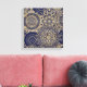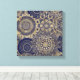 Elegantes skurriles, einzigartiges Imitat Gold Glitzer Stammeskollektion Design, mädchenhafte indische Blüte, gefüllt mit Punkten, geometrische Formen, Linien, Streifen, Dreiecke, Kreis von Blume, gelbes Gold, leuchtende Punkte, abstrakte mystische Bild, über einem marineblau-blauen Hintergrund. Eine mystische, aztec, lux Dekoration, marineblau und goldene Illustration, Bilddruck.