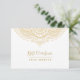 Elegantes Gold verzierte Spitze Mandala Design auf weißem Hintergrund, anpassbare Geschenkgutschein Postcard Design.