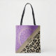 Auf dieser stilvollen Tasche ist eine aufwändige Goldlotus mandala auf einem lila Hintergrund mit einem Goldband, wo Sie es personalisieren können, um es einzigartig zu Ihrem eigenen dann unten, das ist ein braunes und schwarzes Imitat Pelzleoparden Druck für Kontrast. Elegante exotische Villen.