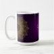 Klassische und trendige Goldmandala auf lila Hintergrund, mit Monogramm Kaffee-Tasse.