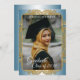 Unique and trendy congratulations graduate announcement card with a classic faux shiny gold colored mandala circle on a smokey gray blue and white ombre gradient pattern background. With room to customize or personalize with a photo, the name of the graduate, class graduation year, high school and future college or university name. Let the family, friends and neighbors know there is a happy graduate ready to conquer the world, and invite everybody to come celebrate the happy event with you!