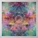 Dieses Kunstwerk hat ein boho-chic und verträumt Gefühl mit einem whimsical blumengoldenen Stamm mandala Design platziert auf einem schönen farbenfrohen Aquarellnebel und Sterne Hintergrund. Das Design umfasst Azteken und mystische Elemente, das Universum und die Natur.