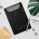 Chic Clipboard verfügt über zwei Textzeilen in klassisch weißer Schrift auf einem schwarzen Hintergrund mit vertikalen Litzen von Imitaten goldfarbene Folienzeichenleuchten, die von oben kaskadiert werden. Design wiederholt sich auf der Rückseite. Bitte beachten Sie, dass diese Zwischenablage eine Mini-Größe hat; Vollversion ist auch in unserer Gold Marquee Kollektion erhältlich.