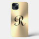 Gold metallische Case-Mate Phone Case Apple iPhone 13. Personalisierte Telefonabdeckung mit anfänglichem Namen und glänzender goldfarbener Hintergrundstruktur. Trendy Geburtstag oder Weihnachten Geschenk Idee. Auch für ältere Modelle und andere Marken erhältlich. Anpassbare Farben.