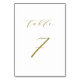 Tabelle 7. Vervollständigen Sie Ihren Tisch mit dieser eleganten und einfachen Tischnummer-Karte. Es verfügt über ein minimalistisches goldenes Skript mit weißem Hintergrund. Diese Script-Tischnummer ist ideal für Hochzeiten, Abschluss, Babyduschen, Brautpartys und andere Veranstaltungen. Weitere Nummern und Farben sind verfügbar.