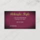 Diese Visitenkarte eignet sich perfekt für Stylist, Kosmetiker, Veranstaltungsplaner, Innenarchitekten und viele andere Berufe. Sie enthält Ihre Initialen in einem großen, goldenen Drehbuch, mit Ihrem Firmennamen in Weiß überlagert. Der Hintergrund ist dunkel, Bordeaux mit Textur und einem "Spotlight-Effekt", der die Mitte hervorhebt. Sehr elegant und beruflich aussehend! Die Rückseite ist auch bordeauxrot strukturiert, mit Platz für mehr Informationen, Termine, etc.