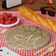Empfang-Dekor für Hochzeitsgold Moderne Teller für Blumenzapier. Elegantes, modernes, trendiges, stilvolles, schicker, wunderschönes Metallmuster. Um die Typografie zu ändern, klicken Sie auf Bearbeiten Design. Bildrecht Marg Seregelyi Fotografie.