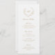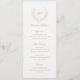 Elegantes Hochzeitsmenü mit einem sauberen und zeitlosen Design, mit Ihrem Monogramm in einem Kranz-Wappen. Verwenden Sie die Vorlage, um jeden Gastnamen hinzuzufügen und die Platzkarten zu überspringen.