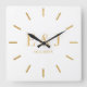 An elegant and minimalist square wall clock. The clean white face is enhanced by large initials (E & J) and a customizable date in a luxurious gold tone. Black hands and gold dash markers add a touch of sophistication. Perfect as a wedding gift, anniversary present, or for chic, modern home decor.