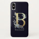 Gold Monogram Letter B Navy Blue Floral Name Case-Mate iPhone Hülle