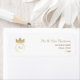 Einfache, elegante, goldene Buchstaben in Kombination mit weißem Hintergrund. Klassisches, ausgeklügeltes Rücksendelabel mit einzigartigen Monogramminitialen aus Goldkronen. Ideal für Hochzeiten.