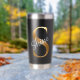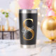 Gold Monogram S - Shine Motivational Black Tumbler Thermobecher