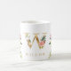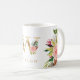 Eine personalisierte Kaffee-Tasse mit einem Imitat Goldbrief "W" Monogramm, mit dekorativen Aquarellblüten und Foliage Illustrationen. Einfach mit Ihrem Namen anpassen oder ein einzigartiges Geschenk für Ihre Lieben schaffen.