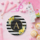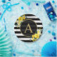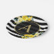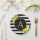 Fügen Sie Ihrem nächsten Party, Ihrer Veranstaltung oder jeden Tag ein wenig Luxus hinzu, mit dieser schönen schwarz-weiß gestreiften, goldfarbenen Monogramm-Papierplatte. Mit einem schwarzen Kreissegment aus Monogramm-Hintergrund, umgeben von goldenem Gold, ist das Design mit schönen gelben Aquarellfarben und zartem Herbst-grünes Blattwerk geschmückt. Schön!