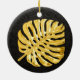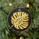 Monstera Blatt in Gold auf schwarzen Ledertextur.