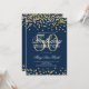 Gold Navy Blue 50. Geburtstag Glitzer Confetti Einladung