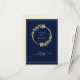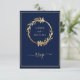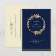 Gold Navy Blue Eucalyptus Foliage Wreath Wedding RSVP Karte