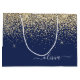 Gold Navy Blue Glitzer Script Monogram Girl Name Große Geschenktüte