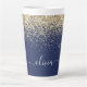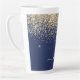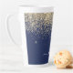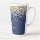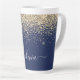 Navy Blue und Gold Imitate Foil Metallic Sparkle Glitzer Script Monogram Name Latte Coffee Cup Tasse. Das macht den perfekten 16 Geburtstag, Hochzeit, Brautparty, Jubiläum, Babydusche oder Junggeselinnen-Abschied Geschenk für jemanden, der Lieben glamourösen Luxus und schicke Stile.