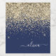 Gold Navy Blue Glitzer Script Monogram Girl Name Weinetikett