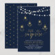 Feiern Sie Ihren besonderen Tag mit dieser stilvollen modernen Party Einladung. Dieses raffinierte Design besticht durch stilvolle Typografie, schöne Saitenlichter und geometrische Beleuchtungsgrafiken in goldener Textur. Sie können Text und Hintergrundfarbe anpassen. Perfekte Einladung für eine moderne Gold & Marineblau-Pensionssfeier.