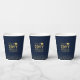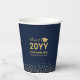 Dieser moderne Graduiertenpapierbecher mit Goldtypografie "Class of 20YY (Abschluss Year)" und einer Graduierungskappengrafik mit konfetti Hintergrund. Sie können den Text in schwarz anpassen. Weitere Farboptionen und Party-Vorräte gibt es in meinem Shop BaraBomDesign.