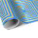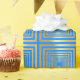 Dekoratives und elegantes neonblau-goldenes Geschenkpapier mit glänzenden Goldplätzen, das eng mit der 3D-Illusion verbunden ist.