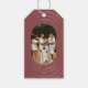 Ein wunderschönes Weihnachtsgeschenk-Tag-Design, das mit Ihrem Foto und Ihrer Familie angepasst werden kann. Golden Xmas Akzente mit ovalem Rahmen und tiefgründiger, violett rosa Hintergrundfarbe.