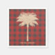 Auf diesen karierten Büffel-Papierservietten mit roten und grauen Büffeln, die für warmes Wetter geeignet sind, finden Sie eine goldene Imitat-Palme und Ihren Namen in schicker Schrift. PASSENDE Artikel in unserem Geschäft.