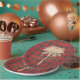 Frohe Weihnachtstexte und eine Palme in Imitaten Goldfolie sind auf diesen karierten Büffel-Tellern mit rotem und grauem Büffel zu sehen, perfekt für jeden Anlass. PASSENDE Artikel in unserem Geschäft.
